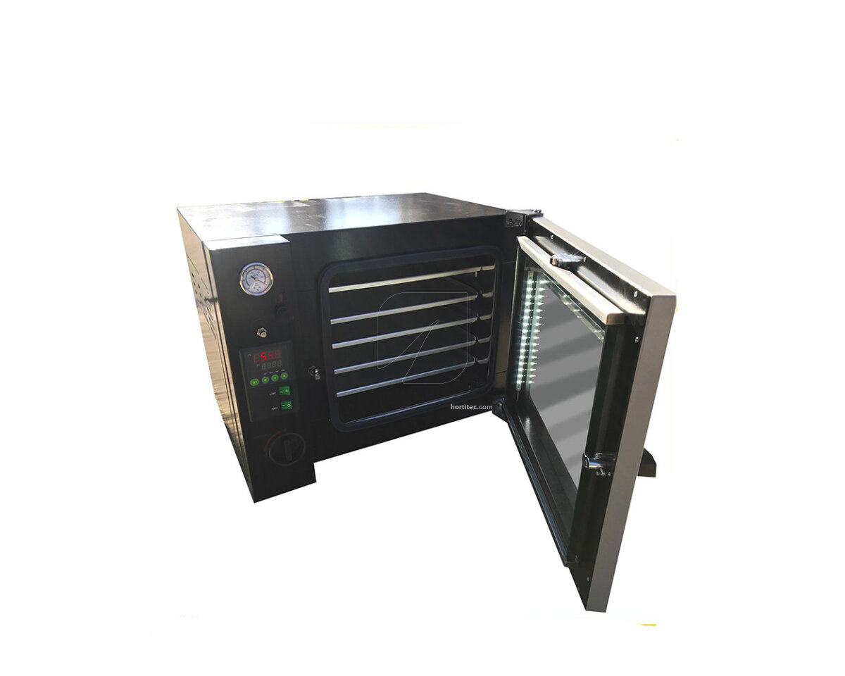 Los hornos de vacío Vacuum de 25 L y 53 L, están diseñados para la desgasificación o purificación de los extractos de aceites esenciales (BHO). Están hechos de acero inoxidable, calientas a 4 lados (izquierda, derecha, superior e inferior). Sus bandejas son de aluminio, tiene dos tiras de LED brillantes y la maneta es de plástico ABS resistente a golpes con piezas de metal.