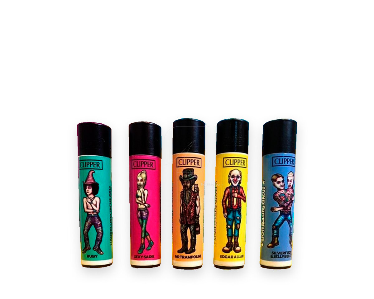 Mecheros de bolsillo Clipper con los diseños de la familia Lion Rolling Circus.