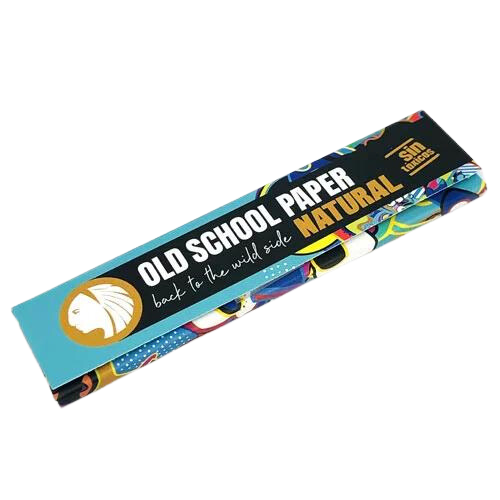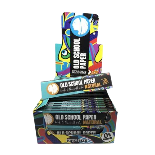 Se trata del típico papel tamaño «L». Los librillos de papel Old School Paper de la rama King Size cuentan con 40 hojas precortadas de papel 100% natural, con 0 aditivos o químicos. La cubierta de estos librillos es azul, inspirada en la temática New School y con en logo de Old School Paper en Negro, aunque puedes personalizarla a tu gusto.